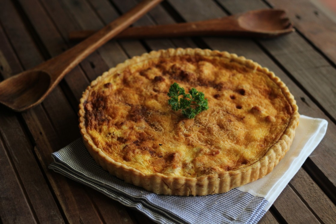 4. Spread bacon and 100g grated Gruyère cheese on the pastry.