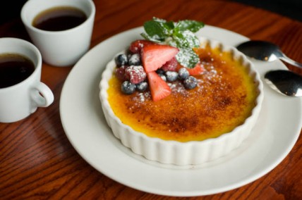 Crème Brûlée is a creamy dessert topped with crisp caramelized sugar.