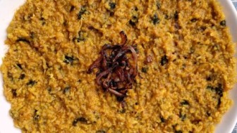 Boil fish and shred. Roast flour in ghee lightly then add fish and milk. Stir until creamy thick paste forms. Serve hot with rice.