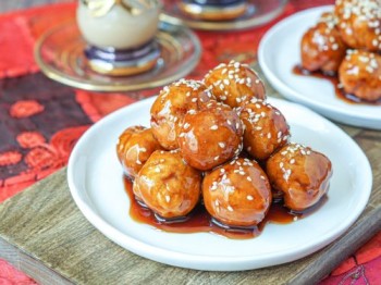 Mix flour, yeast, sugar with warm water to form dough. Rest 1 hour. Roll into small balls. Deep fry until golden. Drizzle date syrup and sprinkle sesame seeds.